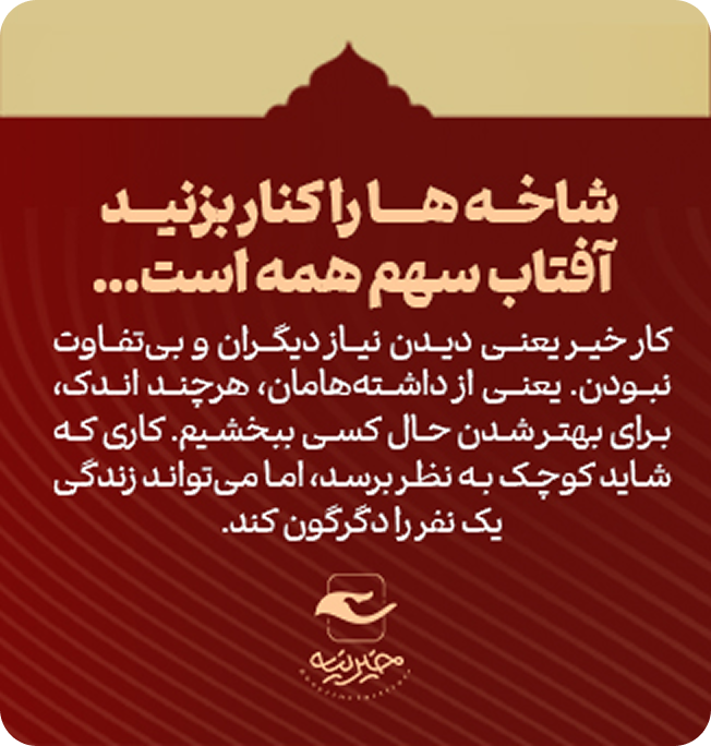 ما در خیرینه باور داریم که «خیر را جاری کنیم» نه فقط یک شعار، بلکه یک مأموریت است؛ مأموریتی برای ساختن آیندهای روشنتر، با دستهای بههمپیوستهی مردم نیکاندیش ایران.