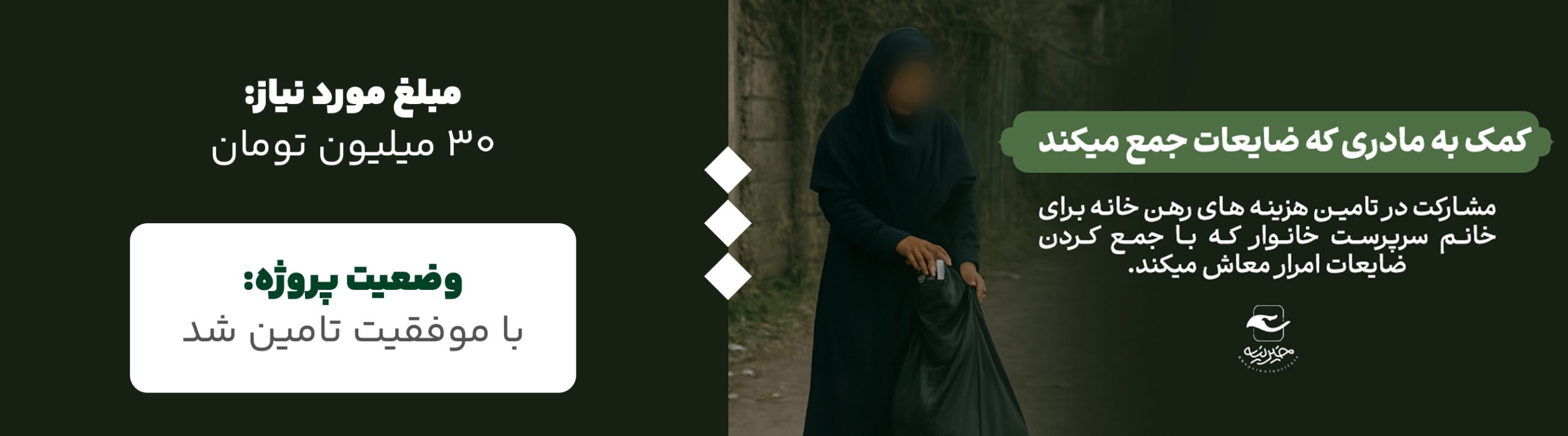 پروژه «سرپناهی از مهر» با هدف حمایت از مادری سرپرستخانوار که برای تأمین هزینههای زندگی ناچار به جمعآوری ضایعات بود، توسط خیریه خیرینه اجرا شد. این مادر مدتی با خطر بیسرپناهی روبهرو بود و پرداخت هزینه اجاره منزل برای او به ضرورتی فوری و حیاتی تبدیل شده بود.